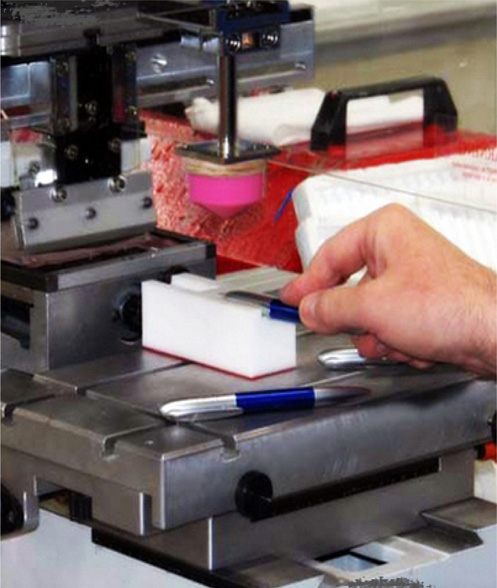 Эластичный элемент, переносящий изображение называемый «тампоном», переносит изображение с поверхности специальных печатных форм (пластин) с углублёнными элементами на поверхности практически любой формы. Данным методом мы печатаем на авторучках, зажигалках, брелоках, бутылочных пробках, одноразовой посуде, парфюмерной упаковке, корпусах приборов и многое другое.